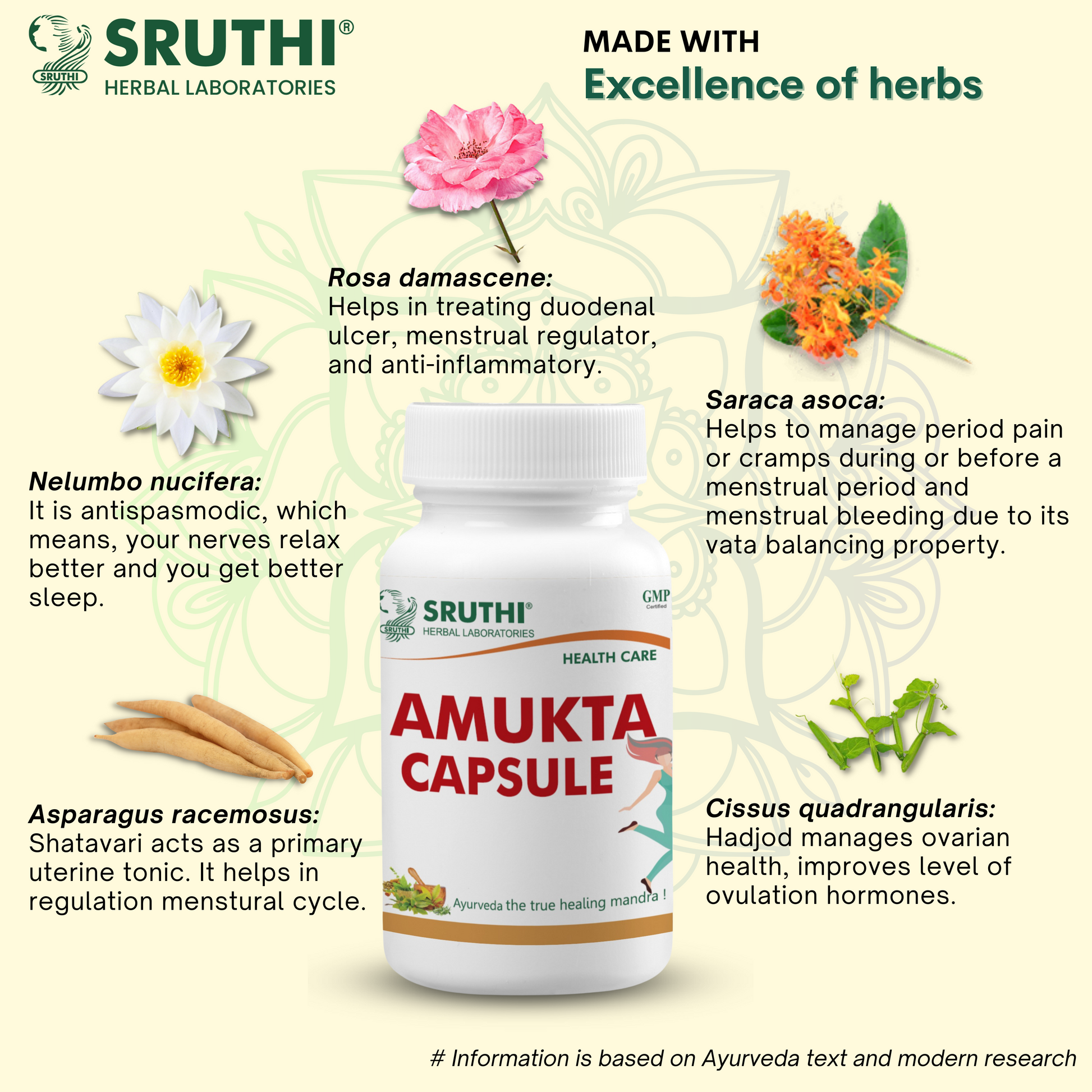 ● Sruthi Amukta Capsule is the key management to set right menstrual disorders.