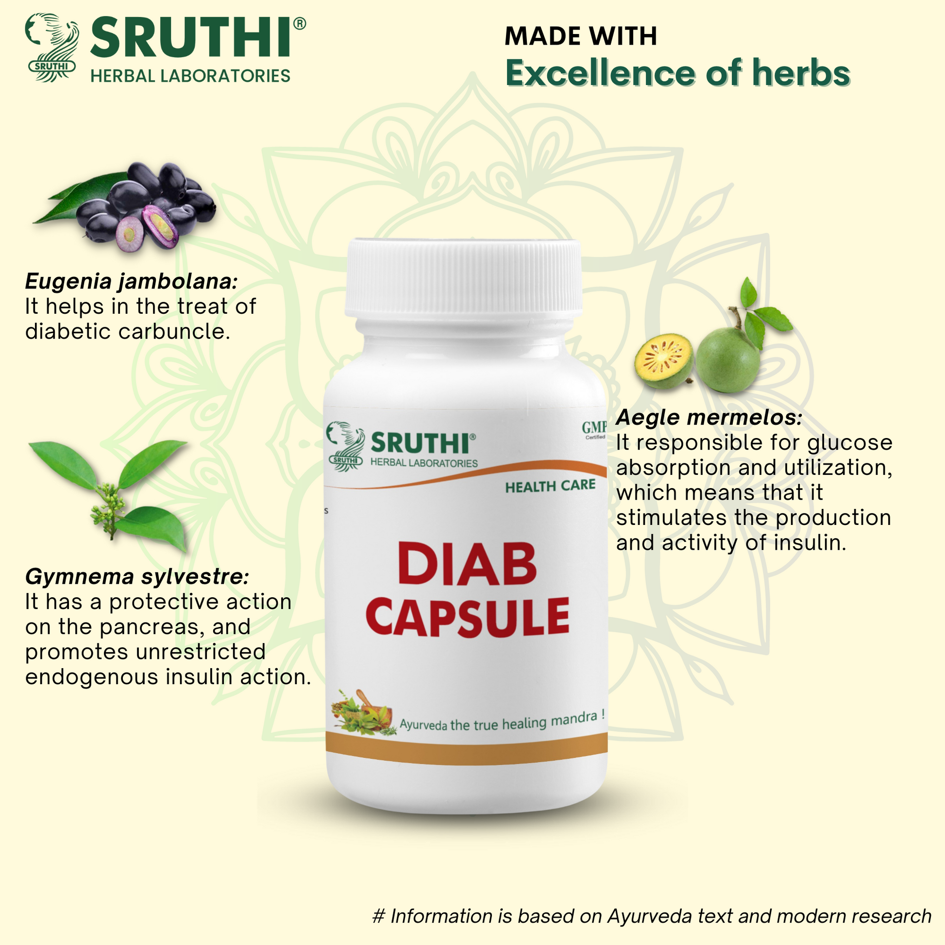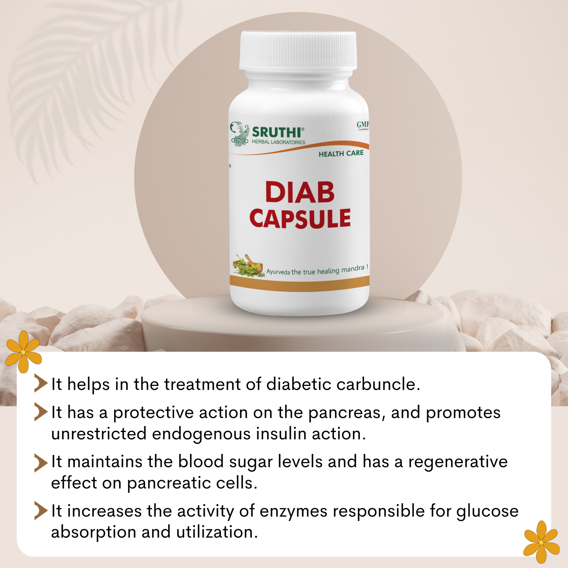 ● Sruthi Diab Capsule helps in the treatment of diabetic carbuncle. It also decreases hepatic glucose production and prevents hyperglycemia.